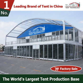 Liri-tent high quality Arcum Double Decker based on our arcum tent structure is a new design conformed with the structure principle of Double Decker.This Arcum Double Decker Tent (Model:ADDS) is also made from a modular system like traditional clear span structure. The length can be extended by 5m bay section without a limit and it is the same as the normal structures. ADDS Arcum shape model clear span which can be from 15m to 30m. The main profile is 300x120x5/8mm.